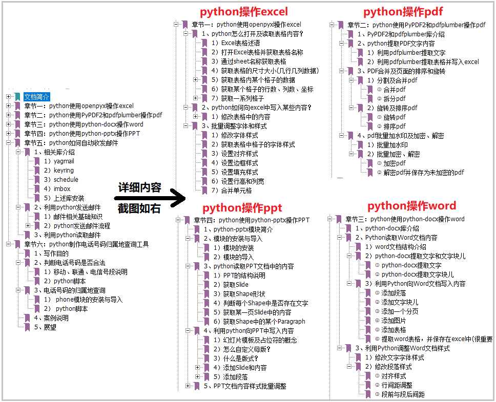 其中 《python自动化办公系列文章》 共包含六个章节,不仅有详细的代码解释,而且还有详细的图文说明,通俗易懂,让你轻松完成办公自动化。