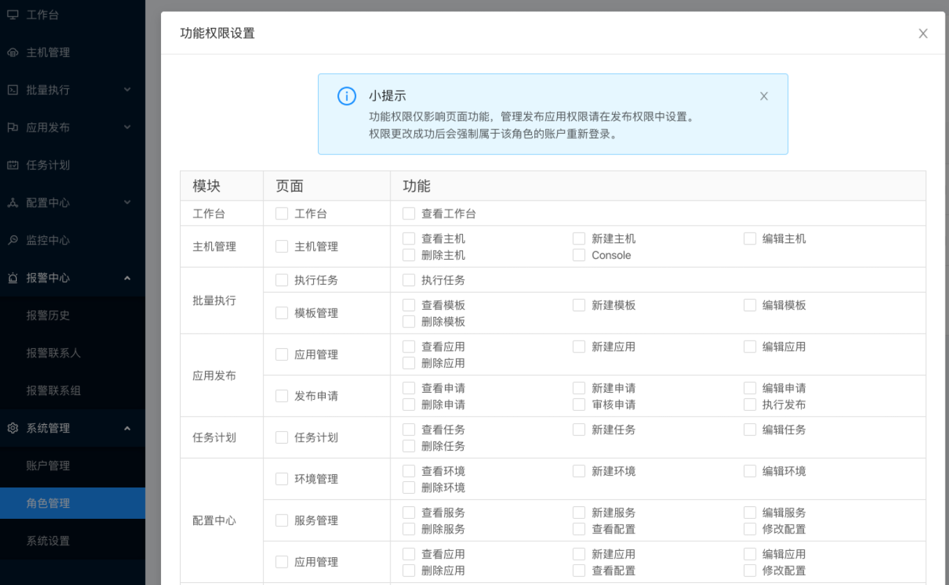 - 报警中心: 支持短信、邮件、钉钉、微信等报警方式