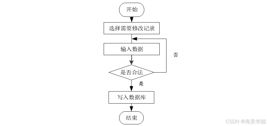 管理员可以修改博物馆藏品信息,用户可以修改自己权限内的信息,首先进入修改信息界面,输入需要修改信息,在系统进行判定为正确和合规后修改成功,并将数据更新至数据库。信息不合法则修改失败,重新输入。修改信息流程图如图3-5所示。