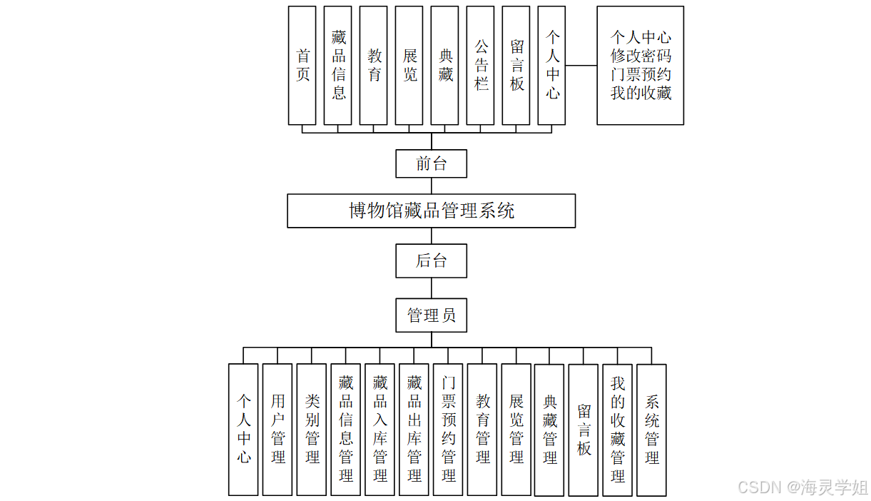 本系统采用SpringBoot框架开发,结合Java技术,以MySQL数据库为后端存储,构建了一个功能全面、操作便捷的博物馆藏品管理系统。系统主要分为管理员模块和用户模块,涵盖了以下功能: