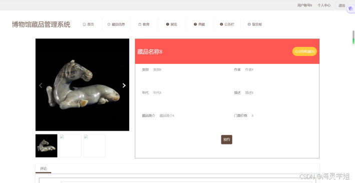 系统首页:展示博物馆的基本信息和藏品概览,为用户提供直观的入口。