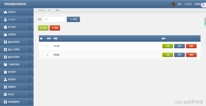 类别管理:对藏品的分类进行管理,方便用户按类别查询藏品。