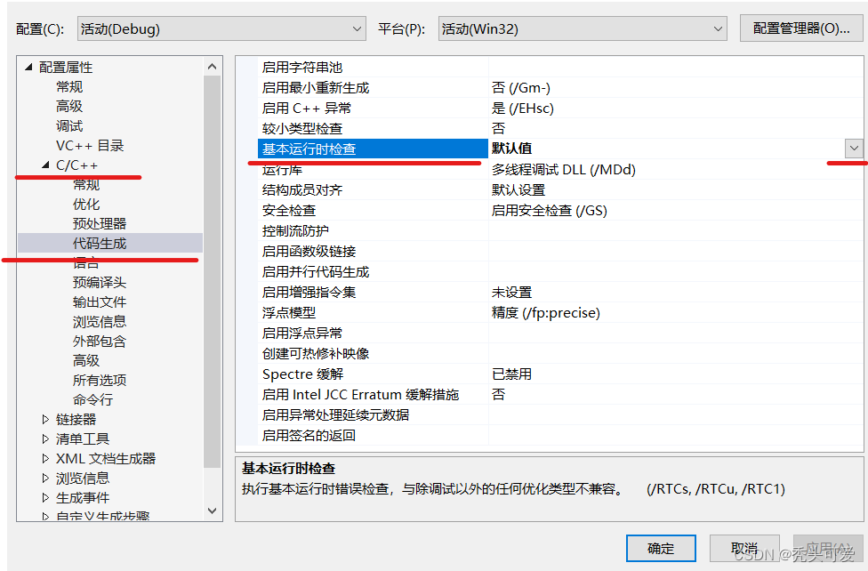 把“基本运行时检查”改为默认值即可