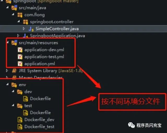 以开发环境的Dockerfile为例,如果是测试环境则,把所有路径包含springboot_dev改成springboot_test