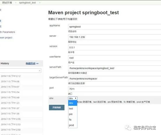 步骤流程几乎一样,唯一是在SSH Publishers 和源码存放路径不一样,测试环境部署目标机器是与Jenkins机器不同一台机器