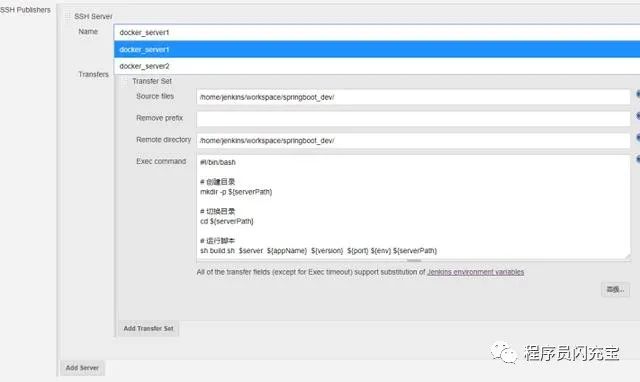 其中SSH Server Name就是在http://jenkins地址:端口/jenkins/configure设置好进行选择