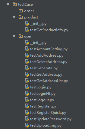testCase文件夹下,存放我们写的具体的测试case啦,上面这些就是小编写的一些。注意喽,所有的case名称都要以test开头来命名哦,这是因为,unittest在进行测试时会自动匹配testCase文件夹下面所有test开头的.py文件