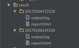 result文件夹会在首次执行case时生成,并且以后的测试结果都会被保存在该文件夹下,同时每次测试的文件夹都是用系统时间命名,里面包含了两个文件,log文件和测试报告。