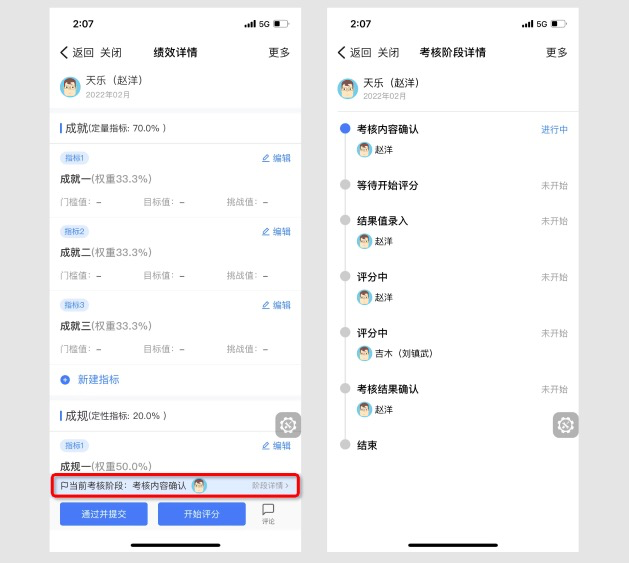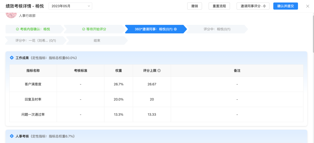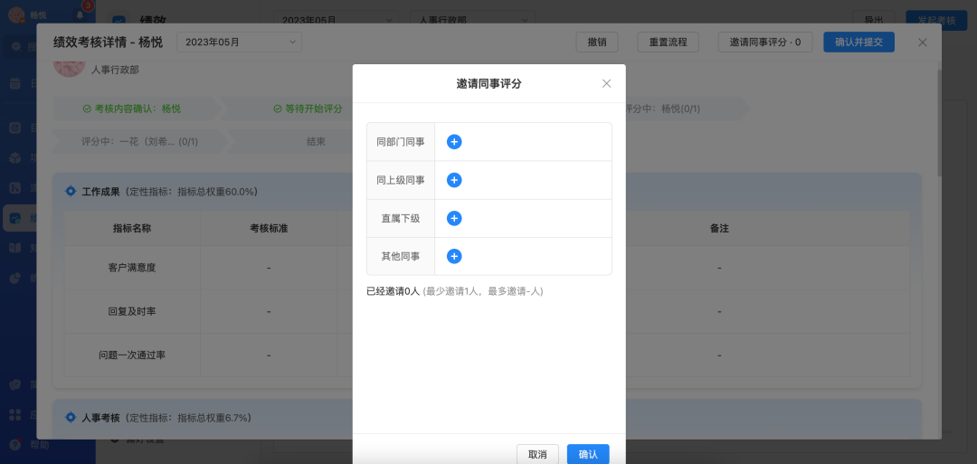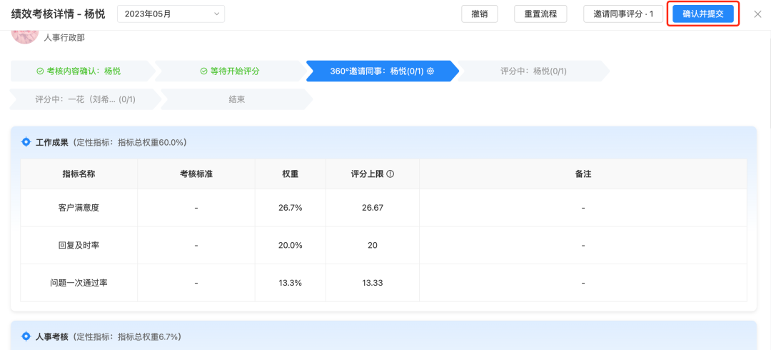 确认后,点击确认提交,提交确认邀请评分同事,并进入下一个流程节点。