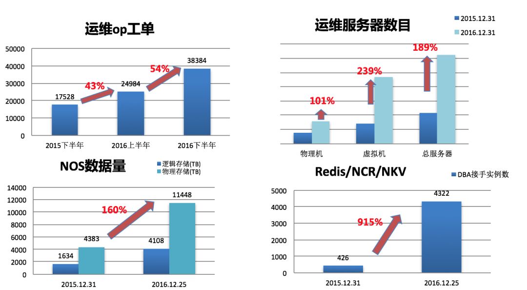 最近两三年,随着网易云音乐、考拉海购等产品业务的迅猛发展,杭研体系整体的服务器规模数也快速增长,运维部门统计到的支持工单量也已从2016年上半年日均210个上涨到2016下半年日均315个、2017上半年日均319个,在整体人数保持稳定情况下需要在运维效率方面做可持续性提升。
