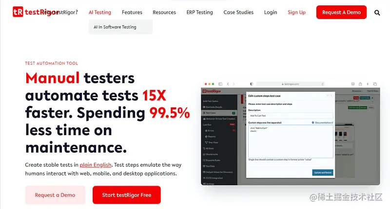 testRigor 是一个无代码测试自动化平台,旨在帮助企业自动化其测试过程,而无需具备编码专业知识。该工具提供了各种功能,使团队能够轻松规划、执行和管理自动化测试。为了快速开发自动化测试用例,它利用机器学习算法来识别和分类 UI 元素。