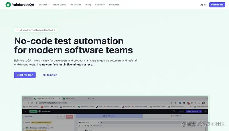 Rainforest 是一种基于云的无代码测试工具,使团队无需编写一行代码即可创建、管理和执行测试。它使用人工智能驱动的测试来识别测试并确定测试的优先级,以便团队可以首先关注最重要的测试。借助 Rainforest,用户可以使用自然语言创建测试,从而使那些不精通编程的人也可以使用它。还可以通过该工具的可视化界面轻松维护和更新测试。