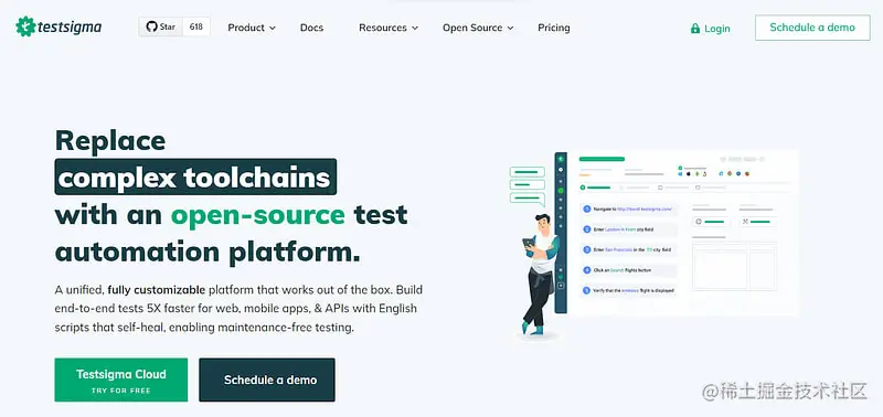 Testsigma 是一个基于云的测试自动化平台,提供无代码测试创建和维护,使 QA 团队更容易协作并更快地构建自动化测试。该平台使用人工智能驱动的测试来生成和执行网络和移动应用程序的测试,而无需编程技能。它预先构建了与流行测试框架和 CI/CD 工具的集成,使团队能够将 Testsigma 无缝整合到其现有的开发工作流程中。