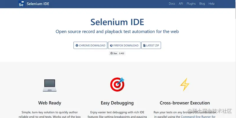 Selenium IDE是顶级的无代码测试工具之一,允许您使用 Selenium 提供的所有功能来自动化 Web 应用程序,而无需编写代码。它使用记录和回放功能来支持无代码自动化测试。Selenium IDE 可以通过插件进行扩展。他们将新命令引入 IDE 或将其与其他服务合并。它是一种简单易用的无代码自动化测试工具,可提供即时反馈,并允许您使用 Selenium IDE 命令行运行程序在任何操作系统和浏览器组合上运行测试。