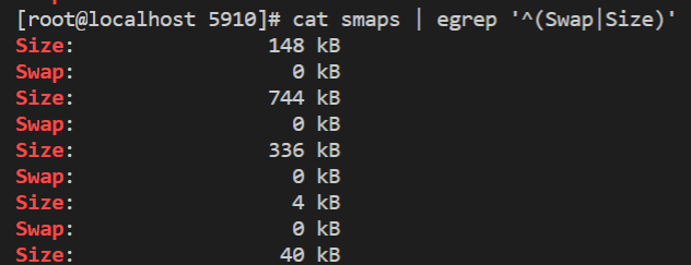 上图中size代表redis实例占用的一块内存空间,都有一个对应的Swap,swap的大小代表该内存空间区域有多少已经被换到硬盘了,如果size和swap相等,则代表已经全部被换到了内存空间。