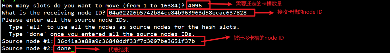 使用命令进行集群重新分配卡槽,如下图: