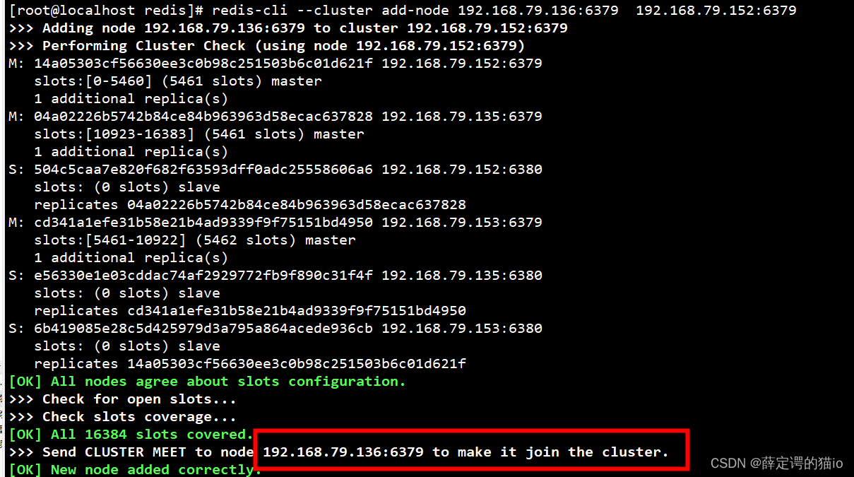 把新的Redis节点192.168.79.136:6379加到当前集群中: