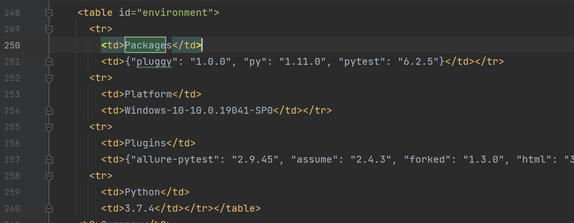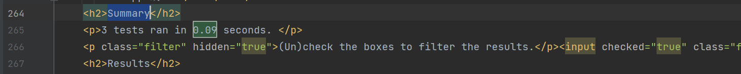 可以看到源代码中264行表示的是概括,但默认的内容只有用例总数和运行时间,如果我们想要增加自己想要的