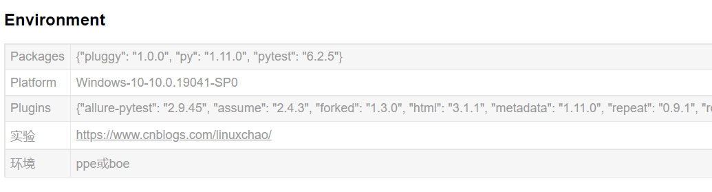 件执行初始配置。我在再来重新生成html报告可以看见我们在Environment下修改的内容