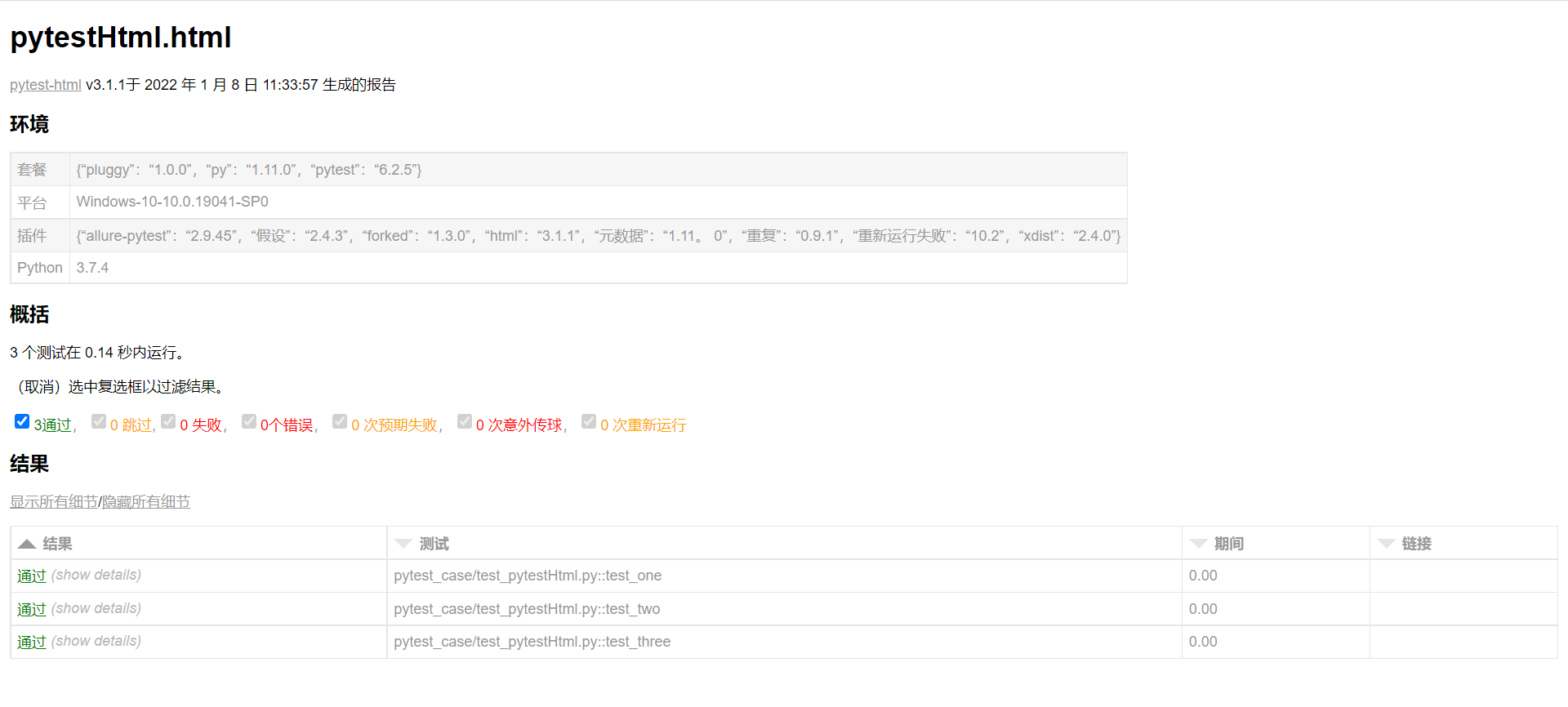 css文件,打开素材的html报告后可以看见用例的执行情况