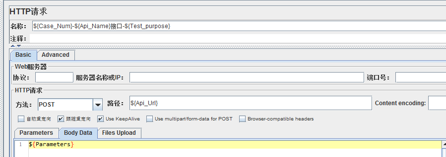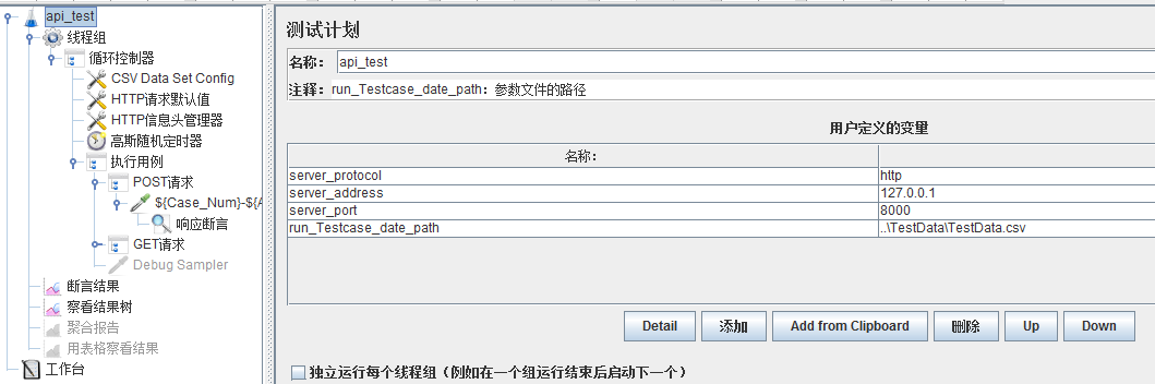 测试计划中定义用户变量,以供后面的脚本使用,如图