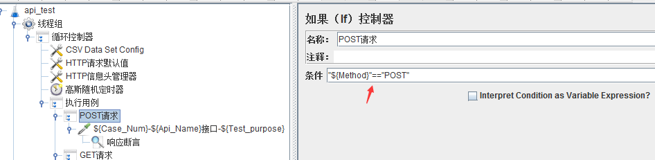 通过if选择器区分GET与POST方法的请求,配置http请求,如图
