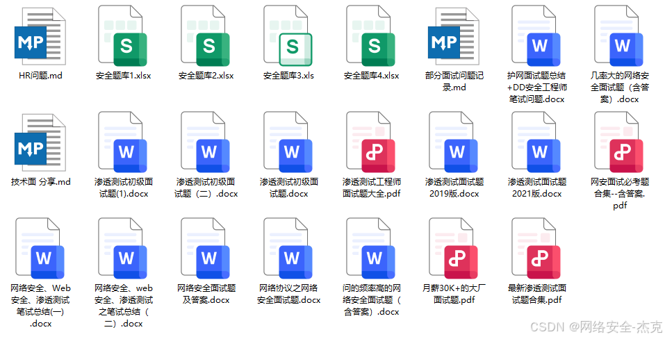 这些资料,对于【网络安全】的朋友来说应该是最全面最完整的备战仓库,这个仓库也陪伴上万个网络安全工程师们走过最艰难的路程,希望也能帮助到你!有需要的小伙伴可以点击下方小卡片领取