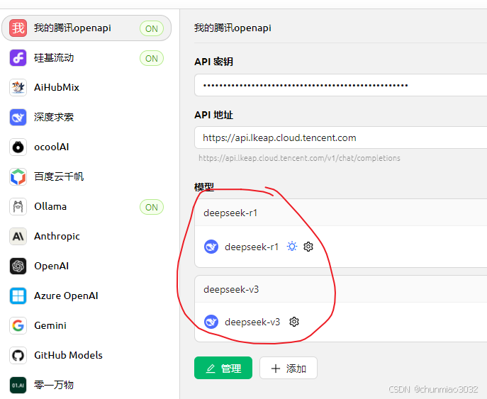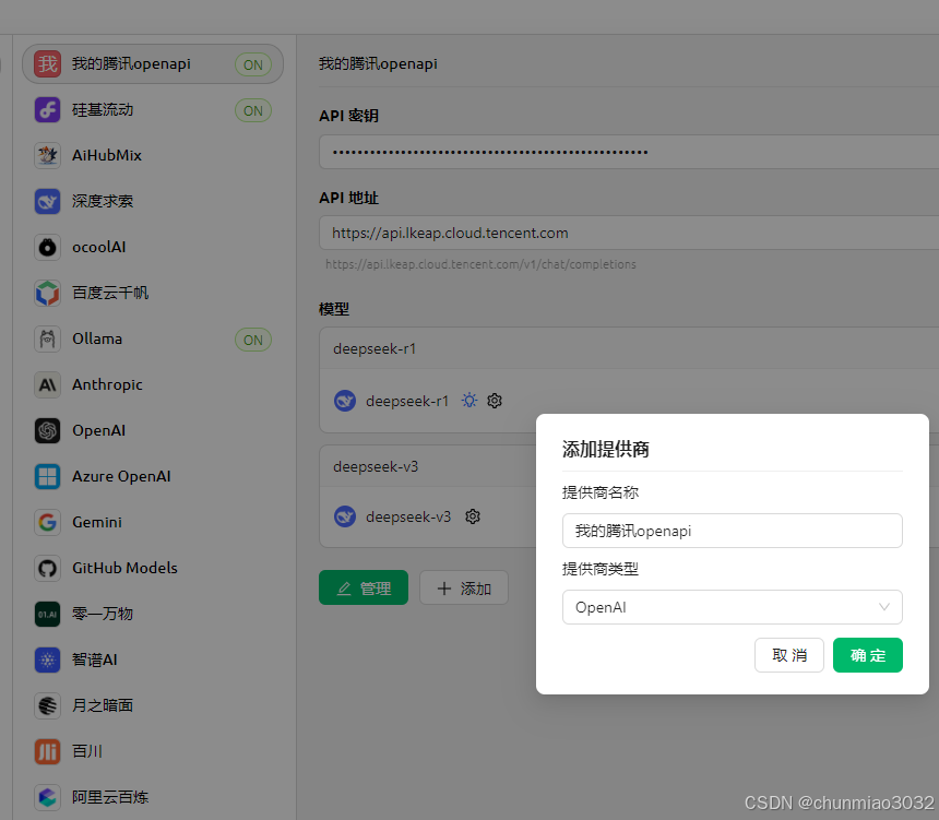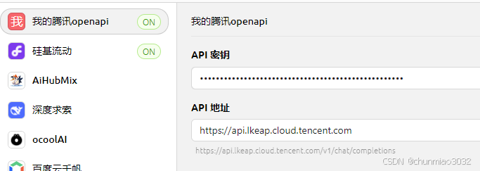 3、配置CherryStudio,添加腾讯云上创建的大模型