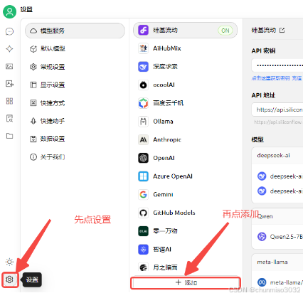 (2)或者准备部署在公有云上的大模型地址和api_key,嵌入模型使用CherryStudio提供的