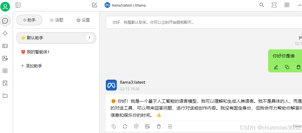 需要部署大模型和嵌入模型(太要求电脑配置了,配置差的最好不要尝试,我i5,16G内存,固态硬盘,集成显卡,deepseek根本跑不起来,llama3勉强能跑起来,但是超级慢,嵌入模型nomic-embed-text:latest跑起来后,向量化个几k的文本文件用了几分钟)安装ollama启动ollama启动后,Ollama会在默认端口11434上运行。你可以通过浏览器访问拉取llama3模型运行模