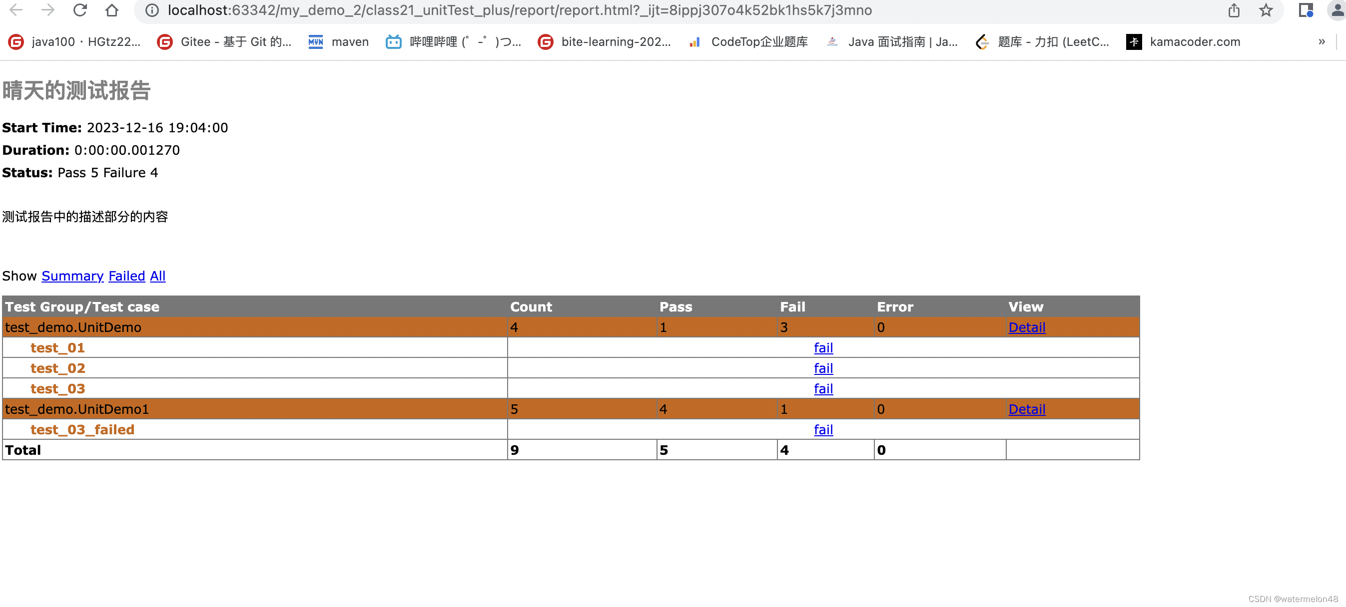 HTMLTestRunner测试报告生成:UnitTest中非常主流应用的测试报告运行器,不是UnitTest官方自带的。HTMLTestRunner生成html格式的测试报告 。