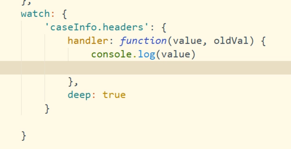 监听器能直接监听某个属性。但是如果要监听caseInfo.headers,需要将caseInfo.headers括起来。