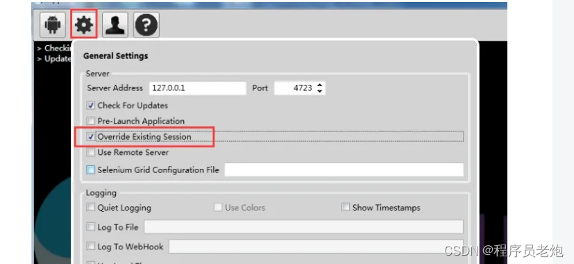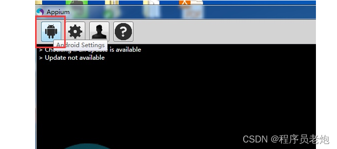 1) 双击桌面上的appium图标打开,点击Android Settings进行设置。