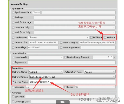 2)将上方获取到的真机的deviceName填入 ,选择platformName和platformVersion