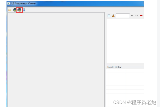 点击uiautomatorviewer.bat进行启动,左上角一共四个按钮,作用分别是打开本地文件、dump页面、dump压缩格式的页面、保存;启动后点击左上角第三个图标进行真机界面的呈现。