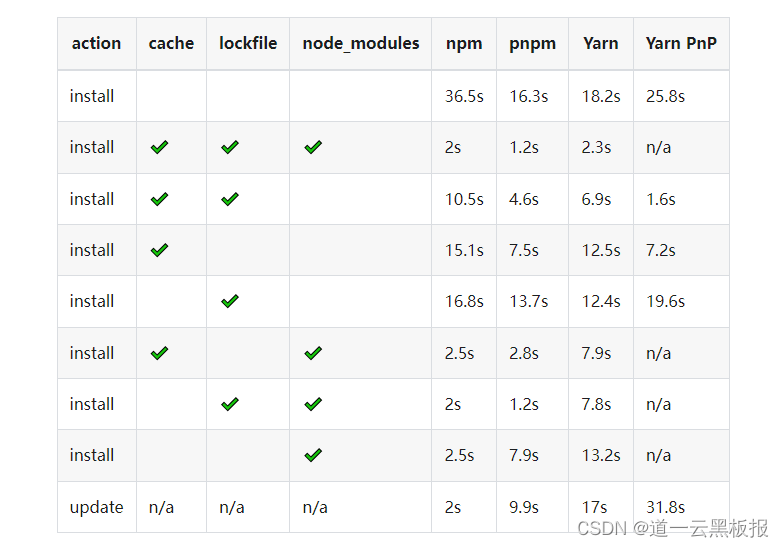 pnpm全称performant npm,意味“高性能的 npm”,它是新一代的包管理工具。相较于npm和Yarn,pnpm在性能上得到很大提升,被称为快速的,节省磁盘空间的包管理工具。
