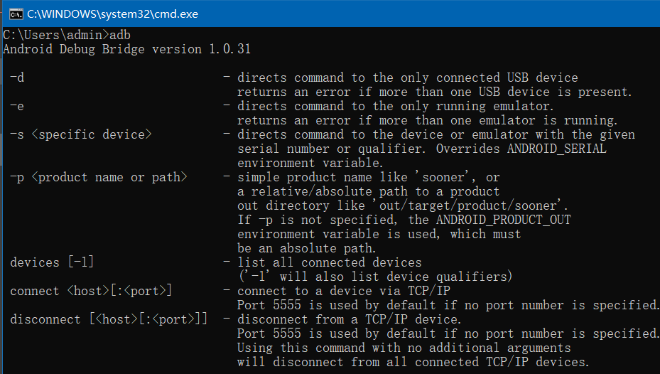 三、电脑安装ADB工具,百度搜索ADB工具安装,安装完成后cmd命令输入adb显示如图即可