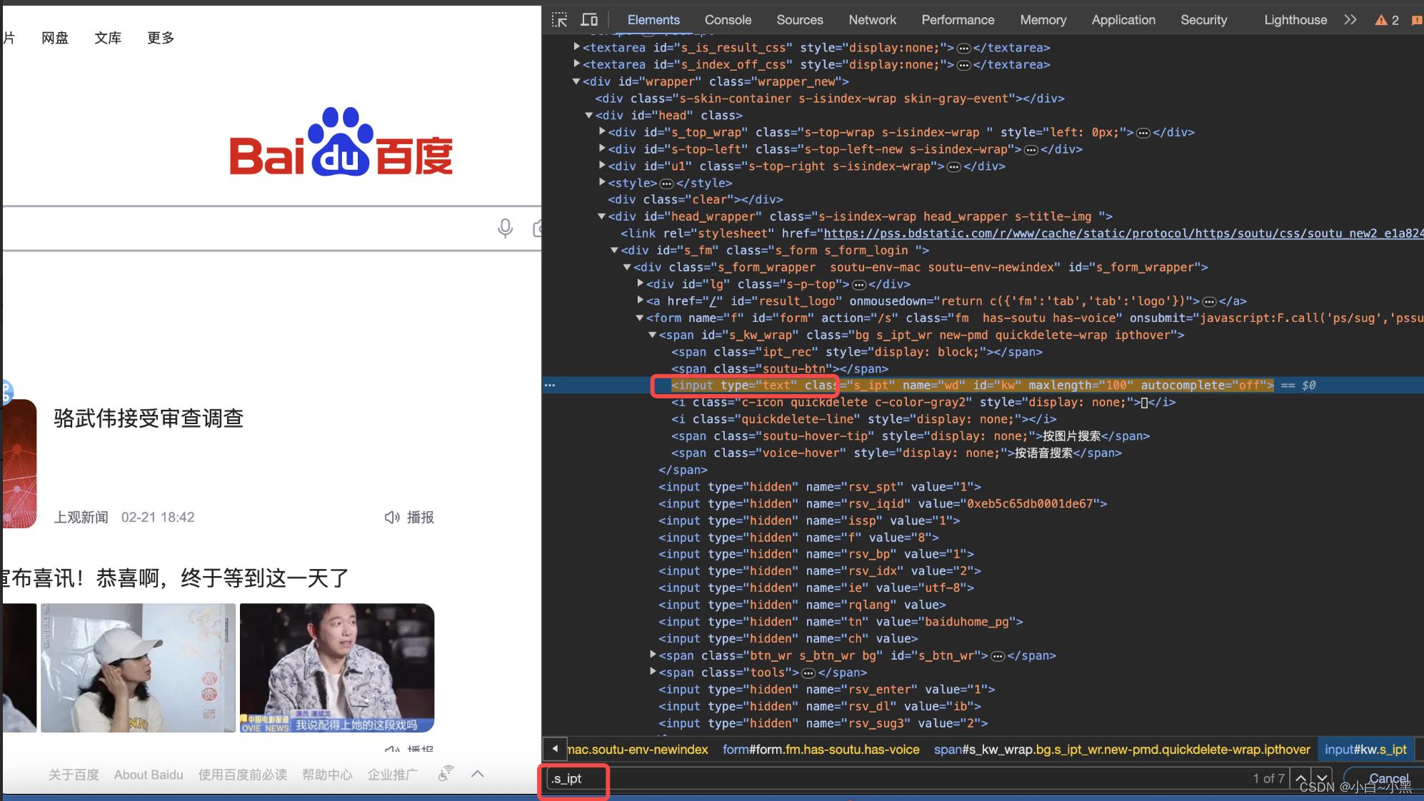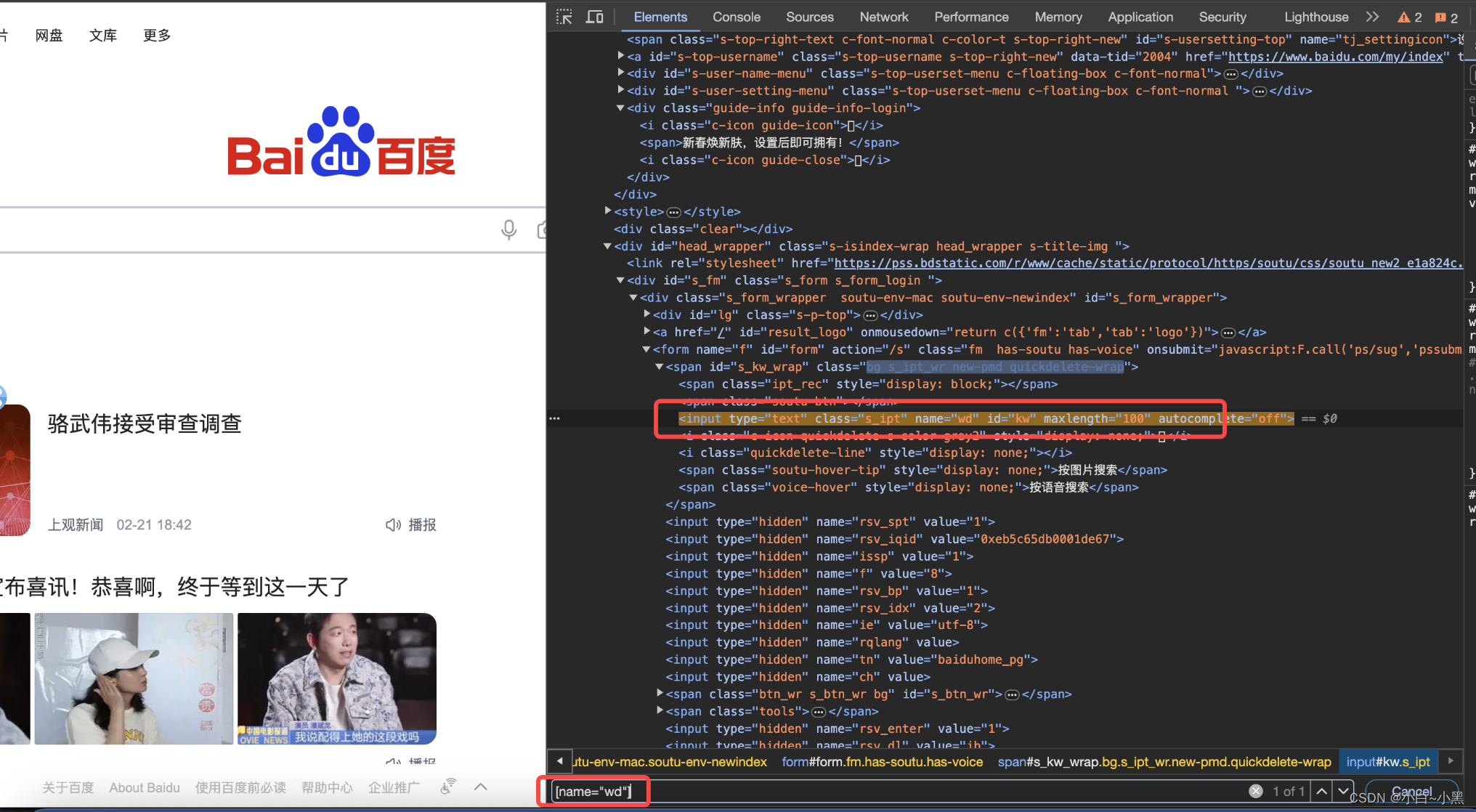 # 通过属性选择器定位到输入框并输入"百度一下,"