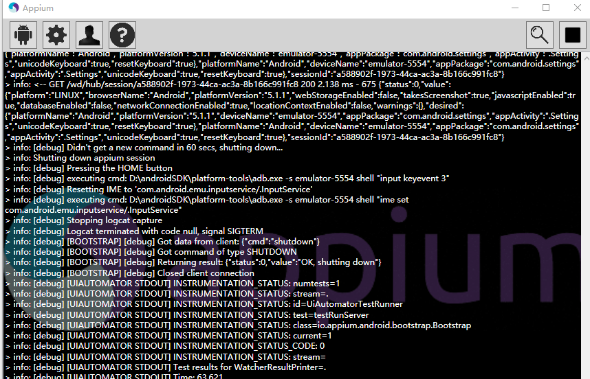 如果60s内没有接收到新命令,appium会自动断开连接,如果我需要很长时间