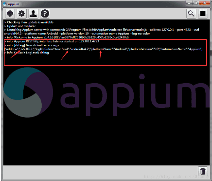 2.中间是起的Appium的服务,Appium在服务端起了一个Server(4723端口),