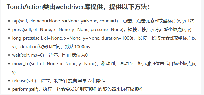 driver.find_element_by_id("com.wuba.zhuanzhuan:id/mg").send_keys(u"电动车")android.widget.TextView(这里使用的是className,也可以使用id,系统会依次。通过TouchAction对象,添加tap、move_to等操作,然后perform()执行,可以。5、Inspector:查找元素用的,windo
