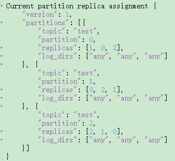 PS: 虽然这里配置的是全部的分区副本分配配置,但是正在生效的是新增的分区; 比如: 以前3分区1副本是这样的