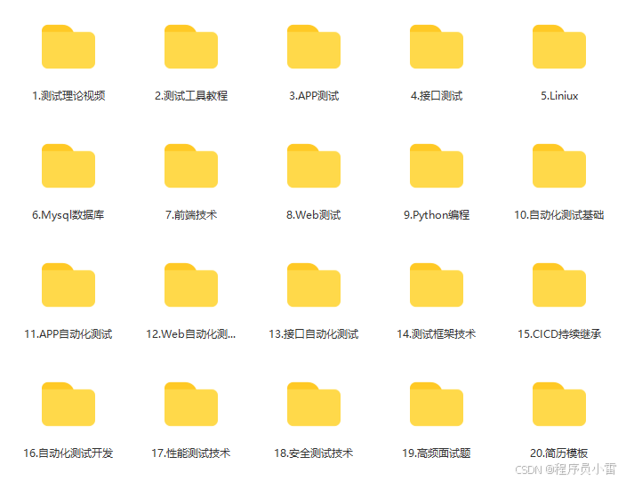 这些资料,对于【软件测试】的朋友来说应该是最全面最完整的备战仓库,这个仓库也陪伴上万个测试工程师们走过最艰难的路程,希望也能帮助到你!有需要的小伙伴可以点击下方小卡片领取