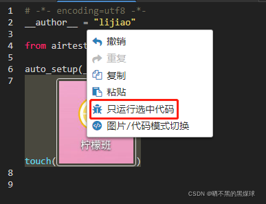 注意:airtest中跟python中的注释方法一致,有单行i注释# 多行注释""" ....""""