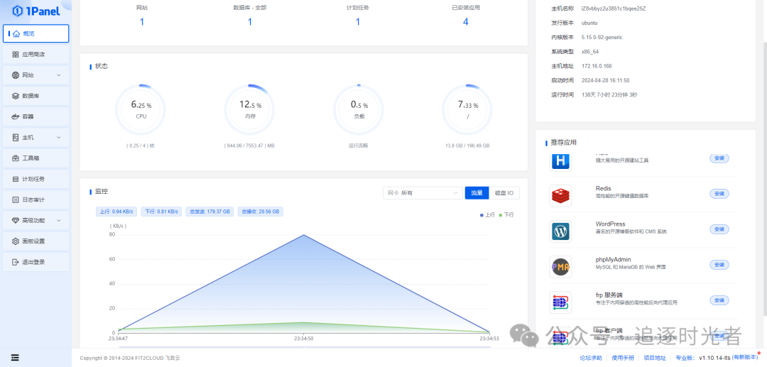 之前有小伙伴问:Linux 服务器运维管理除了宝塔,还有其他值得推荐的管理软件吗?,今天大姚给大家分享一个现代化、开源的 Linux 服务器运维管理面板:1Panel。