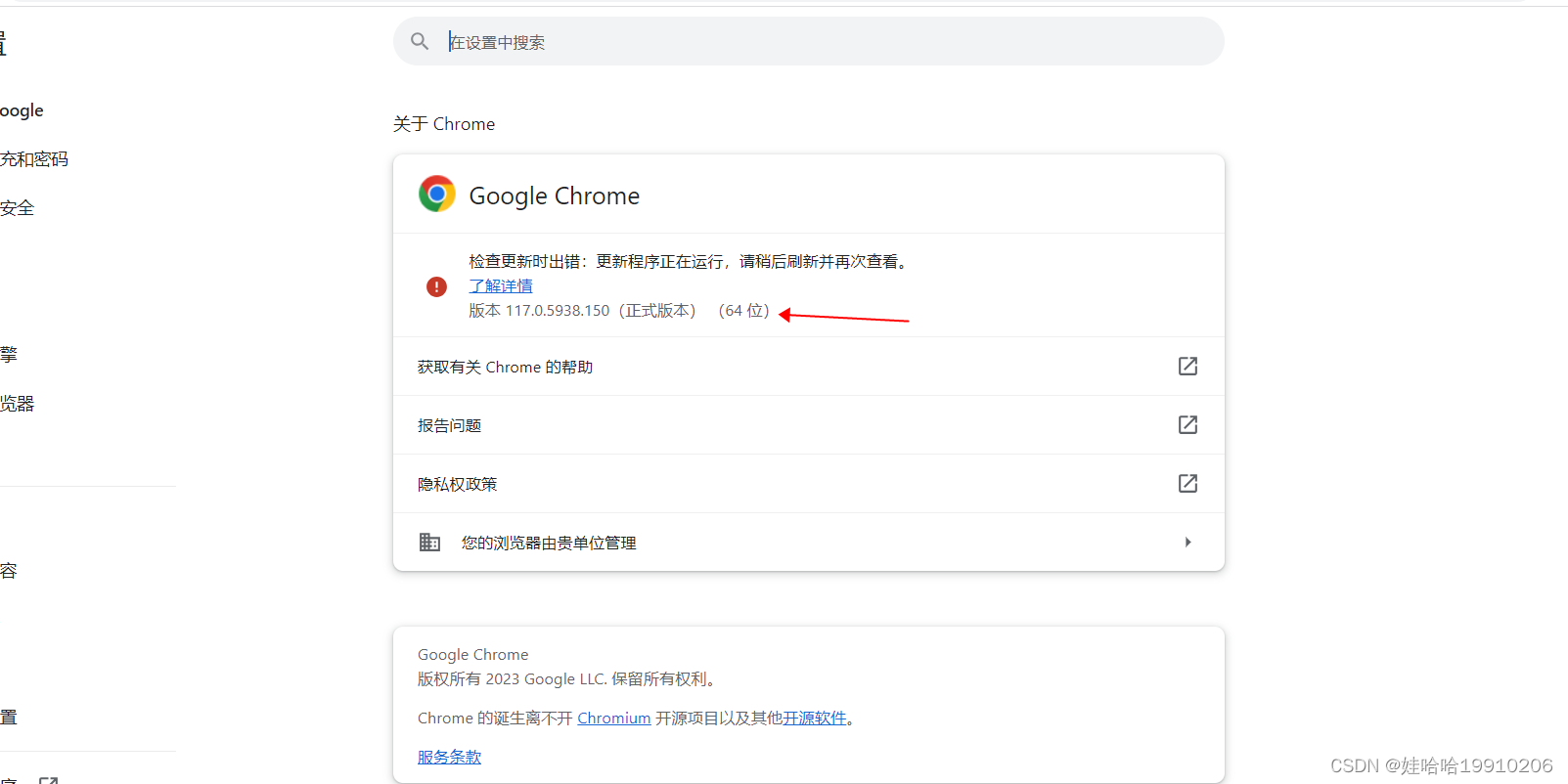 我的浏览器版本是:117.0.5938.150。最新版本地址是:117.0.5938.149,问题不大。进行下载。