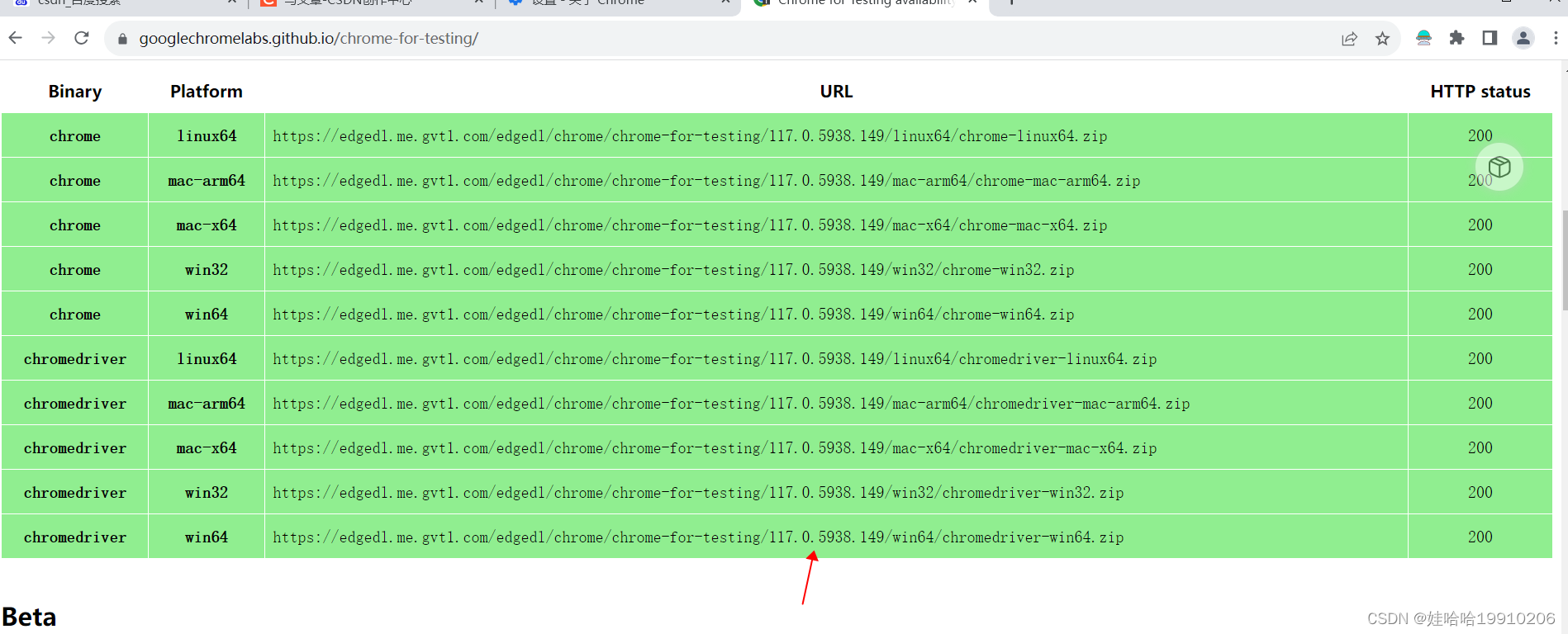 最新驱动地址:https://googlechromelabs.github.io/chrome-for-testing/