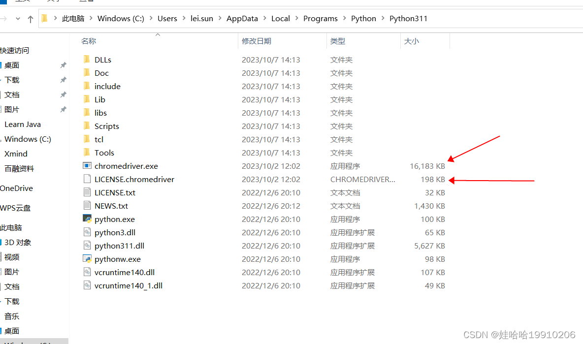 其他版本驱动地址:https://registry.npmmirror.com/binary.html?我的python安装目录是:C:\Users\lei.sun\AppData\Local\Programs\Python\Python311。最新驱动地址:https://googlechromelabs.github.io/chrome-for-testing/最新版本地址是:117.0.59