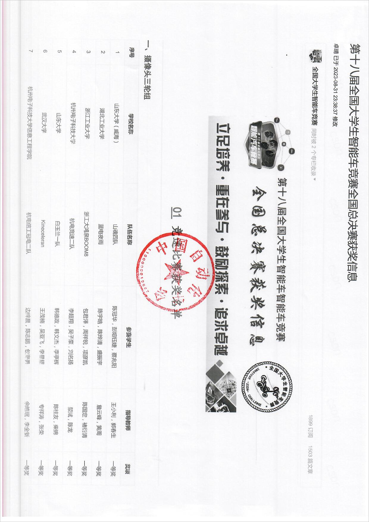 第十八届全国大学生智能车竞赛全国总决赛获奖信息-自动化学会盖章版本