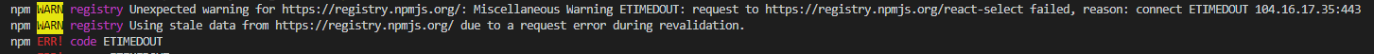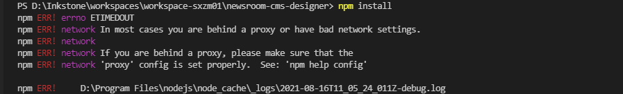 错误日志:error network request to http://registry.npm.taobao.org/echarts-liquidfill failed, reason: connect ETIMEDOUT 124.95.157.161:80error network This is a problem related to network connectivity.error